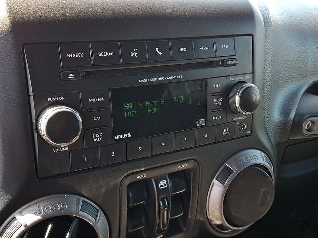 This Vehicle Includes the Following Options: Connectivity Group (Remote USB Port, Tire Pressure Monitoring Display, Uconnect Voice Command w/Bluetooth®, and Vehicle Information Center), Quick Order Package 23C, Quick Order Package 23S (17 x 7.5 Aluminum Wheels, Auto-Dimming Mirror w/Reading Lamp, Chrome/Leather Wrapped Shift Knob, Deep Tint Sunscreen Windows, Front 1-Touch Down Power Windows, Leather Wrapped Steering Wheel, Power Convenience Group, Power Heated Mirrors, Power Locks, Remote Keyless Entry, and Security Alarm), 1-Yr SiriusXM Radio Service, 16 x 7.0 Luxury Styled Steel Wheels, 4-Wheel Disc Brakes, 8 Speakers, ABS brakes, Air Conditioning, Alpine 9-Speaker w/All Weather Subwoofer, AM/FM radio, Anti-Spin Differential Rear Axle, Brake assist, CD player, Cloth Seats w/Adjustable Head Restraints, Compass, Driver door bin, Driver vanity mirror, Dual front impact airbags, Electronic Stability Control, Front anti-roll bar, Front Bucket Seats, Front Center Armrest w/Storage, Front fog lights, Integrated roll-over protection, Low tire pressure warning, Normal Duty Suspension, Occupant sensing airbag, Outside temperature display, Passenger door bin, Passenger vanity mirror, Power steering, Premium Black Sunrider Soft Top, Radio: 130, Rear anti-roll bar, SIRIUS Satellite Radio, Speed control, Split folding rear seat, Steering wheel mounted audio controls, Tachometer, Tilt steering wheel, Traction control, Trip computer, and Variably intermittent wipers.