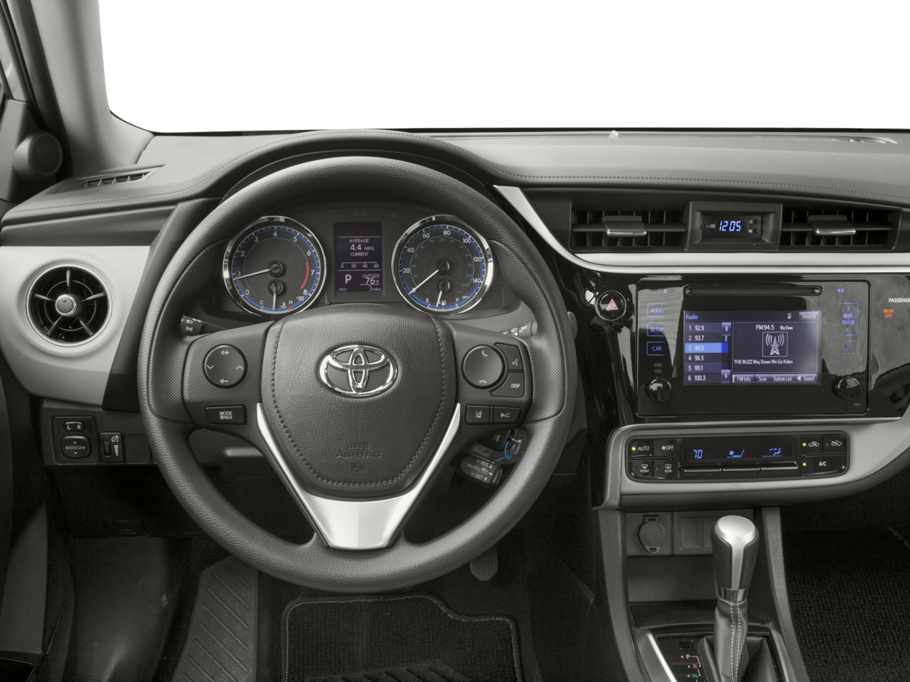 THIS VEHICLE INCLUDES THE FOLLOWING FEATURES AND OPTIONS: 6 Speakers, ABS brakes, Air Conditioning, AM/FM radio, Auto High-beam Headlights, Automatic temperature control, Brake assist, Bumpers: body-color, CD player, Delay-off headlights, Driver door bin, Driver vanity mirror, Dual front impact airbags, Dual front side impact airbags, Electronic Stability Control, Exterior Parking Camera Rear, Fabric Seat Trim, Front anti-roll bar, Front Bucket Seats, Front Center Armrest w/Storage, Front reading lights, Front wheel independent suspension, Fully automatic headlights, Heated door mirrors, Illuminated entry, Knee airbag, LED Daytime Running Lights (DRL), Low tire pressure warning, Occupant sensing airbag, Outside temperature display, Overhead airbag, Panic alarm, Passenger door bin, Passenger vanity mirror, Power door mirrors, Power steering, Power windows, Radio data system, Radio: Entune Audio Plus w/Connected Navigation, Radio: Entune Audio w/6.1 Screen, Rear anti-roll bar, Rear seat center armrest, Rear window defroster, Remote keyless entry, Speed control, Speed-sensing steering, Split folding rear seat, Steering wheel mounted audio controls, Tachometer, Telescoping steering wheel, Tilt & Slide Moonroof, Tilt steering wheel, Traction control, Trip computer, Variably intermittent wipers, and Wheels: 16 x 6.5 Wide Vent Steel. 28/36 City/Highway MPG