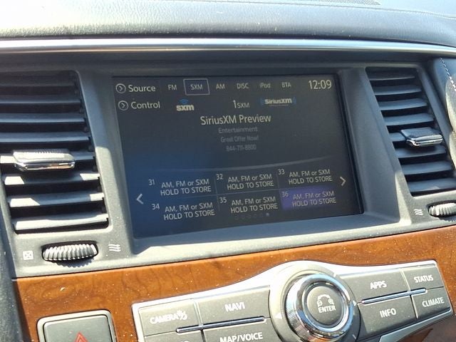 - Radio: AM/FM/HD w/Single In-Dash CD/DVD Player & MP3 -inc: INFINITI controller w/8-inch touch-screen display, INFINITI InTouch navigation w/voice recognition, lane guidance and 3D building graphics, INFINITI InTouch services includes 12-months of safety, security and convenience services, Bose 13-speaker premium sound system including 2 subwoofers, streaming audio via Bluetooth® wireless technology, Bluetooth® hands-free phone system, hands-free text messaging assistant, Radio Data System (RDS), speed-sensitive volume control, driver's audio stage, SiriusXM radio w/90-day complimentary trial, SiriusXM Traffic w/4-year complimentary trial access to real-time traffic information, SiriusXM Travel Link w/4-year complimentary trial access to weather, fuel prices, stocks, sports and movie times and 2 first row USB connection ports for iPod interface and other compatible devices