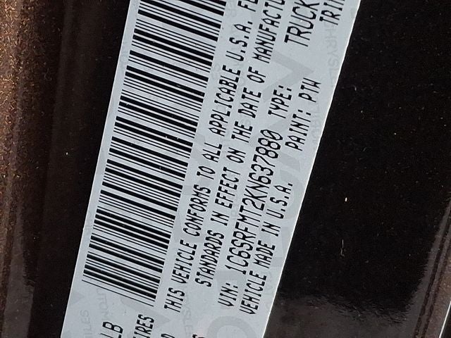 THIS VEHICLE INCLUDES THE FOLLOWING FEATURES AND OPTIONS: Bed Utility Group (4 Adjustable Cargo Tie-Down Hooks, Pick-Up Box Lighting, and Spray In Bedliner), Big Horn Level 1 Equipment Group (Auto-Dimming Rear-View Mirror, Big Horn IP Badge, Class IV Receiver Hitch, Cluster 3.5 TFT Color Display, Foam Bottle Insert (Door Trim Panel), Glove Box Lamp, Power 4-Way Driver Lumbar Adjust, Power 8-Way Driver Seat, Power Adjustable Pedals, Power Heated Fold Away Mirrors, Radio: Uconnect 4 w/8.4 Display, Rear Dome w/On/Off Switch Lamp, Rear Power Sliding Window, Rear Window Defroster, Single Disc Remote CD Player, SiriusXM Satellite Radio, Sun Visors w/Illuminated Vanity Mirrors, and Universal Garage Door Opener), Quick Order Package 27Z Big Horn/Lone Star (Steering Wheel Mounted Audio Controls), 1-Year SiriusXM Radio Service, 1-Yr SiriusXM Guardian Trial, 3 Rear Seat Head Restraints, 3.21 Rear Axle Ratio, 4 Way Front Headrests, 4-Wheel Disc Brakes, 48V Belt Starter Generator, 5-Year SiriusXM Traffic Service, 5-Year SiriusXM Travel Link Service, 6 Speakers, 8.4 Touchscreen Display, ABS brakes, Air Conditioning, Air Conditioning ATC w/Dual Zone Control, Alloy wheels, AM/FM radio, Anti-Spin Differential Rear Axle, Apple CarPlay, Brake assist, Bumpers: chrome, Cloth Bench Seat, Compass, Delay-off headlights, Disassociated Touchscreen Display, Driver door bin, Dual front impact airbags, Dual front side impact airbags, Electronic Stability Control, For Details, Visit DriveUconnect.com, For More Info, Call 800-643-2112, Front & Rear Rubber Floor Mats, Front anti-roll bar, Front Center Armrest w/Storage, Front fog lights, Front reading lights, Front Seat Back Map Pockets, Front wheel independent suspension, Fully automatic headlights, Google Android Auto, GPS Antenna Input, GPS Navigation, HD Radio, Heated door mirrors, Illuminated entry, Integrated Center Stack Radio, Leather steering wheel, Low tire pressure warning, Manufacturer's Statement of Origin, No Satellite Coverage w/HI/AK/PR/VI/GU, Occupant sensing airbag, Outside temperature display, Overhead airbag, Overhead console, Panic alarm, ParkSense Front/Rear Park Assist w/Stop, ParkView Rear Back-Up Camera, Passenger door bin, Passenger vanity mirror, Power door mirrors, Power steering, Power windows, Radio data system, Radio: Uconnect 3 w/5 Display, Radio: Uconnect 4C Nav w/8.4 Display, Rear 60/40 Folding Seat, Rear anti-roll bar, Rear seat center armrest, Rear step bumper, Rear Wheelhouse Liners, Remote keyless entry, Remote Start System, SiriusXM Traffic Plus, SiriusXM Travel Link, Speed control, Split folding rear seat, Tachometer, Telescoping steering wheel, Tilt steering wheel, Traction control, Trailer Brake Control, Trip computer, Variably intermittent wipers, Voltmeter, and Wheels: 18 x 8.