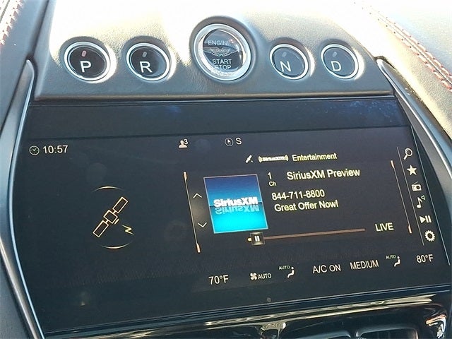 This Vehicle Includes the Following Options: 14 Speakers, 4-Wheel Disc Brakes, ABS brakes, Adaptive suspension, Air Conditioning, Alloy wheels, AM/FM radio: SiriusXM, Apple CarPlay, Auto High-beam Headlights, Auto-dimming door mirrors, Auto-dimming Rear-View mirror, Auto-leveling suspension, Automatic temperature control, Axle Ratio: TBD, Brake assist, Bumpers: body-color, Caithness Leather Seat Trim, Compass, Delay-off headlights, Driver door bin, Driver vanity mirror, Dual front impact airbags, Dual front side impact airbags, Electronic Stability Control, Exterior Parking Camera Rear, Four wheel independent suspension, Front anti-roll bar, Front Bucket Seats, Front Center Armrest, Front dual zone A/C, Front reading lights, Fully automatic headlights, Garage door transmitter: HomeLink, Genuine wood console insert, Genuine wood door panel insert, Heated door mirrors, Heated Front Bucket Seats, Heated front seats, Heated rear seats, HomeLink Wireless Control System, Illuminated entry, Knee airbag, Leather steering wheel, Low tire pressure warning, Memory seat, Navigation System, Occupant sensing airbag, Outside temperature display, Overhead airbag, Panic alarm, Passenger door bin, Passenger vanity mirror, Power door mirrors, Power driver seat, Power Liftgate, Power passenger seat, Power steering, Power windows, Radio data system, Radio: Aston Martin Premium Infotainment Audio System, Rain sensing wipers, Rear air conditioning, Rear anti-roll bar, Rear fog lights, Rear reading lights, Rear seat center armrest, Rear side impact airbag, Rear window defroster, Remote keyless entry, Security system, Speed control, Speed-sensing steering, Split folding rear seat, Spoiler, Sport steering wheel, Steering wheel memory, Steering wheel mounted audio controls, Tachometer, Telescoping steering wheel, Tilt steering wheel, Traction control, Trip computer, Turn signal indicator mirrors, Variably intermittent wipers, and Wheels: 22 Sport Silver.