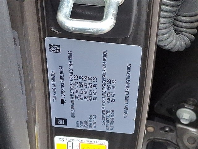 This Vehicle Includes the Following Options: Advanced Trailering Package (Advanced Trailering System, Hitch Guidance w/Hitch View, Integrated Trailer Brake Controller, and Trailer Side Blind Zone Alert), Max Trailering Package (Extra Capacity Cooling System), Preferred Equipment Group 3LZ (12-Way Power Driver & Passenger Seat Adjusters, 15 Diagonal Multi-Color Head-Up Display, 1st & 2nd Row Color-Keyed Carpeted Floor Mats, 2 USB Data Ports, 2-Speed Active Electronic AutoTrac Transfer Case, 3rd Row 60/40 Power-Folding Split-Bench, Automatic Heated Steering Wheel, Bose 10-Speaker Surround w/CenterPoint, Bright Front & Rear Door Sill Plates, Chrome Door Handles w/Body-Color Strip, Color-Keyed Carpeting Floor Covering, Driver & Front Outboard Passenger Airbags, Dual Exhaust System, Enhanced Driver Information Center, Floor Console w/Storage Area, Front & Rear Park Assist, Hands-Free Rear Power Programmable Liftgate, HD Radio, HD Surround Vision, Heated & Ventilated Driver & Front Passenger Seats, Heated 2nd Row Outboard Seats, Heated Driver & Front Passenger Seats, Hill Descent Control, Infotainment Display, Inside Rearview Auto-Dimming Rear Camera Mirror, Lane Change Alert w/Side Blind Zone Alert, Lane Keep Assist w/Lane Departure Warning, Leather-Wrapped Steering Wheel, LED Daytime Running Lamps, Memory Settings, Outside Heated Power-Adjustable Mirrors, Power Release 2nd Row Bucket Seats, Power Tilt & Telescopic Steering Column, Rear Camera Mirror Washer, Rear Cross Traffic Alert, Rear Pedestrian Alert, Remote Start, Safety Alert Seat, SiriusXM Radio w/360L, and Universal Home Remote), Premium Package (Adaptive Cruise Control, Dual-Pane Power Panoramic Sunroof, Enhanced Automatic Emergency Braking, and Power-Retractable Assist Steps), 10 Speakers, 1st & 2nd Rows All-Weather Floor Liners (LPO), 3.23 Rear Axle Ratio, 3rd row seats: split-bench, 4-Wheel Disc Brakes, ABS brakes, Adaptive suspension, Air Conditioning, Alloy wheels, AM/FM radio: SiriusXM with 360L, Apple CarPlay/Android Auto, Auto High-beam Headlights, Auto-dimming door mirrors, Auto-dimming Rear-View mirror, Auto-leveling suspension, Automatic temperature control, Brake assist, Bumpers: body-color, Cargo Security Shade (LPO), Compass, Delay-off headlights, Driver door bin, Driver vanity mirror, Dual front impact airbags, Dual front side impact airbags, Electronic Stability Control, Emergency communication system: OnStar and Chevrolet connected services capable, Four wheel independent suspension, Front & Rear Black Bowtie Emblems (LPO), Front anti-roll bar, Front Bucket Seats, Front Center Armrest, Front dual zone A/C, Front reading lights, Fully automatic headlights, Garage door transmitter, Heads-Up Display, Heated door mirrors, Heated front seats, Heated rear seats, Heated steering wheel, Illuminated entry, Leather steering wheel, Low tire pressure warning, Magnetic Ride Control Suspension, Memory seat, Navigation System, Occupant sensing airbag, Outside temperature display, Overhead airbag, Overhead console, Panic alarm, Passenger door bin, Passenger vanity mirror, Perforated Leather Seating Surfaces, Power door mirrors, Power driver seat, Power Liftgate, Power passenger seat, Power steering, Power windows, Premium audio system: Chevrolet Infotainment 3 Premium, Radio: Chevrolet Infotainment 3 Premium System, Rain sensing wipers, Rear air conditioning, Rear anti-roll bar, Rear reading lights, Rear Seat Media System, Rear window defroster, Rear window wiper, Remote keyless entry, Roof rack: rails only, Security system, Speed control, Speed-sensing steering, Split folding rear seat, Spoiler, Steering wheel memory, Steering wheel mounted audio controls, Tachometer, Telescoping steering wheel, Tilt steering wheel, Traction control, Trip computer, Turn signal indicator mirrors, Variably intermittent wipers, Ventilated front seats, Voltmeter, Wheel Locks (Set of 4) (LPO), and Wheels: 22 x 9 Sterling Silver Premium Painted.
