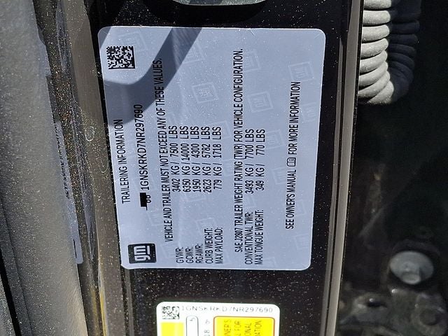 This Vehicle Includes the Following Options: Driver Alert Package (Lane Change Alert w/Side Blind Zone Alert and Rear Cross Traffic Alert), License Plate Front Mounting Package, Luxury Package (2nd Row Pwr Release 60/40 Split-Folding Bench Seat, 3rd Row 60/40 Power-Folding Split-Bench Seat, HD Surround Vision, Heated 2nd Row Outboard Seats, Heated Steering Wheel, Memory Settings, Outside Heated Power-Adjustable Mirrors, Power Tilt & Telescopic Steering Column, and Rear Pedestrian Alert), Preferred Equipment Group 1SP (1st & 2nd Row Color-Keyed Carpeted Floor Mats, Auto-Dimming Inside Rear-View Mirror, Automatic Stop/Start, Bose 9-Speaker Stereo Audio System Feature, Bright Front & Rear Door Sill Plates, Color-Keyed Carpeting Floor Covering, Driver & Front Outboard Passenger Airbags, Enhanced Driver Information Center, Floor Console w/Storage Area, Hands-Free Rear Power Programmable Liftgate, Infotainment Display, Leather-Wrapped Steering Wheel, LED Daytime Running Lamps, Memory Settings for Driver, Remote Start, SiriusXM Radio w/360L, Start/Stop System Disable Button, Universal Home Remote, and Wireless Charging), 4WD, Jet Black/Victory Red Leather, 10-Way Power Driver & Passenger Seat Adjusters, 3.23 Rear Axle Ratio, 3rd row seats: split-bench, 4-Wheel Disc Brakes, 9 Speakers, ABS brakes, Air Conditioning, Alloy wheels, AM/FM radio: SiriusXM with 360L, Apple CarPlay/Android Auto, Auto High-beam Headlights, Auto-dimming Rear-View mirror, Automatic temperature control, Brake assist, Bumpers: body-color, Compass, Delay-off headlights, Driver door bin, Driver vanity mirror, Dual front impact airbags, Dual front side impact airbags, Electronic Stability Control, Emergency communication system: OnStar and Chevrolet connected services capable, Four wheel independent suspension, Front anti-roll bar, Front Bucket Seats, Front Center Armrest, Front dual zone A/C, Front High-Back Reclining Bucket Seats, Front reading lights, Fully automatic headlights, Garage door transmitter, Heated door mirrors, Heated Driver & Front Passenger Seats, Heated front seats, Illuminated entry, Leather steering wheel, Low tire pressure warning, Memory seat, Navigation System, Not Equipped w/Front & Rear Park Assist, Not Equipped w/Steering Column Lock, Occupant sensing airbag, Outside temperature display, Overhead airbag, Overhead console, Panic alarm, Passenger door bin, Passenger vanity mirror, Perforated Leather Seat Trim, Power door mirrors, Power driver seat, Power Liftgate, Power passenger seat, Power Release 2nd Row Bucket Seats, Power steering, Power windows, Premium audio system: Chevrolet Infotainment System 3, Premium Smooth Ride Suspension, Radio: Chevrolet Infotainment 3 Premium System, Rain sensing wipers, Rear air conditioning, Rear anti-roll bar, Rear reading lights, Rear seat center armrest, Rear window defroster, Rear window wiper, Remote keyless entry, Roof rack: rails only, Security system, Set of 4 Wheel Locks (LPO), Speed control, Speed-sensing steering, Split folding rear seat, Spoiler, Steering wheel mounted audio controls, Tachometer, Telescoping steering wheel, Tilt steering wheel, Traction control, Trip computer, Variably intermittent wipers, Voltmeter, and Wheels: 22 x 9 Bright Machined.
