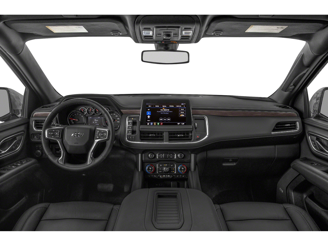 This Vehicle Includes the Following Options: Preferred Equipment Group 2Z7 (1st & 2nd Row Color-Keyed Carpeted Floor Mats, 2-Speed Active Electronic AutoTrac Transfer Case, Auto-Dimming Inside Rear-View Mirror, Automatic Stop/Start, Black Tubular Assist Steps, Bose 9-Speaker Stereo Audio System Feature, Bright Front & Rear Door Sill Plates, Color-Keyed Carpeting Floor Covering, Driver & Front Outboard Passenger Airbags, Enhanced Driver Information Center, Floor Console w/Storage Area, Front High-Approach Angle Fascia, Hands-Free Rear Power Programmable Liftgate, Hill Descent Control, Infotainment Display, Leather-Wrapped Steering Wheel, LED Daytime Running Lamps, Memory Settings for Driver, Red Horizontal-Mounted Recovery Hooks, Remote Start, SiriusXM Radio w/360L, Start/Stop System Disable Button, Universal Home Remote, and Wireless Charging), 4WD, Gideon/Very Dark Atmosphere Leather, 10-Way Power Driver & Passenger Seat Adjusters, 2nd Row Manual Bucket Seats, 3.23 Rear Axle Ratio, 3rd row seats: split-bench, 4-Wheel Disc Brakes, 9 Speakers, ABS brakes, Air Conditioning, Alloy wheels, AM/FM radio: SiriusXM with 360L, Apple CarPlay/Android Auto, Auto High-beam Headlights, Auto-dimming Rear-View mirror, Automatic temperature control, Brake assist, Bumpers: body-color, Compass, Delay-off headlights, Driver door bin, Driver vanity mirror, Dual front impact airbags, Dual front side impact airbags, Electronic Stability Control, Emergency communication system: OnStar and Chevrolet connected services capable, Four wheel independent suspension, Front anti-roll bar, Front Bucket Seats, Front Center Armrest, Front dual zone A/C, Front High-Back Reclining Bucket Seats, Front reading lights, Fully automatic headlights, Garage door transmitter, Heated door mirrors, Heated Driver & Front Passenger Seats, Heated front seats, Illuminated entry, Leather steering wheel, Leather-Appointed Seat Trim, Low tire pressure warning, Memory seat, Navigation System, Not Equipped w/Steering Column Lock, Occupant sensing airbag, Outside temperature display, Overhead airbag, Overhead console, Panic alarm, Passenger door bin, Passenger vanity mirror, Power door mirrors, Power driver seat, Power Liftgate, Power passenger seat, Power steering, Power windows, Premium audio system: Chevrolet Infotainment System 3, Premium Smooth Ride Suspension, Radio: Chevrolet Infotainment 3 Premium System, Rain sensing wipers, Rear air conditioning, Rear anti-roll bar, Rear reading lights, Rear seat center armrest, Rear window defroster, Rear window wiper, Remote keyless entry, Roof rack: rails only, Security system, Speed control, Speed-sensing steering, Split folding rear seat, Spoiler, Steering wheel mounted audio controls, Tachometer, Telescoping steering wheel, Tilt steering wheel, Traction control, Trip computer, Variably intermittent wipers, Voltmeter, and Wheels: 20 x 9 Machined Aluminum.