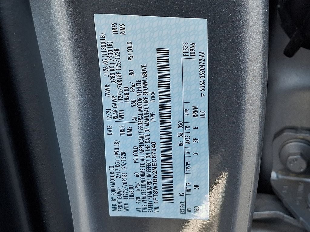 This Vehicle Includes the Following Options: 5th Wheel/Gooseneck Hitch Prep Package, Chrome Package (6 Angular Bright Polished Step Bars, Body-Color Door Handles w/Chrome Insert, Chrome Exhaust Tip, PowerScope Trailer Tow Mirrors w/Heat, Unique Chrome Mirror Caps, and Wheels: 18 Chrome PVD Aluminum), FX4 Off-Road Package (Hill Descent Control, Off-Road Specifically Tuned Shock Absorbers, and Unique FX4 Off-Road Box Decal), GVWR: 11,300 lb Payload Package, Lariat Value Package (Easy Entry®/Exit Memory Driver's Seat Feature, LED Box Lighting, Memory Power-Adjustable Pedals, Power Heated/Ventilated Driver Seat w/Memory, Power Heated/Ventilated Passenger Seat, PowerScope Trailer Tow Mirrors w/Memory, and Remote Start System), Order Code 618A, Snow Plow Prep Package, 4WD, 10 Speakers, 4-Wheel Disc Brakes, 6 Angular Bright Polished Step Bar, ABS brakes, Adjustable pedals, Air Conditioning, Alloy wheels, AM/FM radio: SiriusXM with 360L, Auto High-beam Headlights, Auto-dimming Rear-View mirror, Automatic temperature control, Brake assist, Bumpers: chrome, Compass, Delay-off headlights, Driver door bin, Driver vanity mirror, Dual front impact airbags, Dual front side impact airbags, Electronic Stability Control, Emergency communication system: SYNC 4 911 Assist, Engine Block Heater, Exterior Parking Camera Rear, Flow-Through Console, Front anti-roll bar, Front Bucket Seats, Front Center Armrest, Front dual zone A/C, Front fog lights, Front Leather Seating Surfaces 40/Console/40, Front reading lights, Fully automatic headlights, Gooseneck Hitch Kit (Pre-Installed), Heated door mirrors, Heated Steering Wheel, Illuminated entry, Leather steering wheel, LED Roof Clearance Lights, Low tire pressure warning, Navigation system: Connected Navigation, Outside temperature display, Overhead airbag, Overhead console, Panic alarm, Passenger door bin, Passenger vanity mirror, Power door mirrors, Power driver seat, Power passenger seat, Power steering, Power windows, Radio data system, Radio: B&O Sound System by Bang & Olufsen, Rain-Sensing Windshield Wipers, Rear CHMSL Camera, Rear Parking Sensors, Rear reading lights, Rear seat center armrest, Rear step bumper, Rear window defroster, Remote keyless entry, Security system, SiriusXM Radio w/360L, Speed control, Split folding rear seat, Steering wheel mounted audio controls, SYNC 4 w/Enhanced Voice Recognition, Tachometer, Tailgate Step & Handle, Telescoping steering wheel, Tilt steering wheel, Tough Bed Spray-In Bedliner, Traction control, Trip computer, Turn signal indicator mirrors, Variably intermittent wipers, and Wheels: 18 Bright Machined Cast Aluminum.