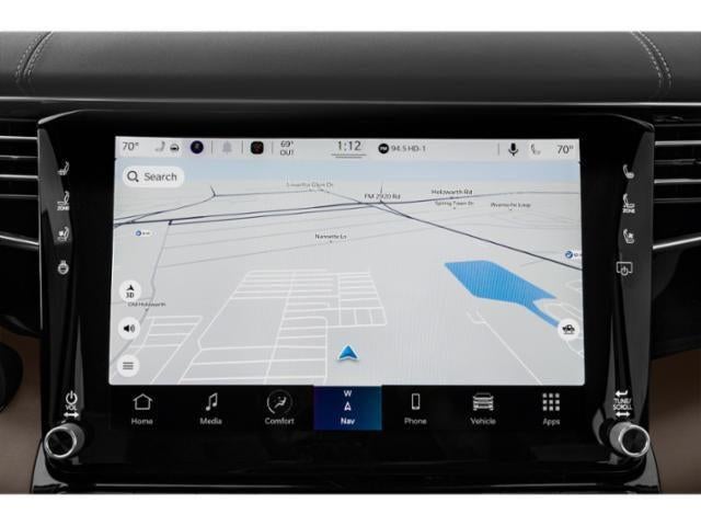 THIS VEHICLE INCLUDES THE FOLLOWING FEATURES AND OPTIONS: Flexible Seating Group (2nd Row Dual Charge-Only USB Ports, 40/20/40 Power Recline Tip/Slide, and 8-Passenger Seating), Quick Order Package 23W, Two Tone Paint Group, 3.92 Rear Axle Ratio, 3rd row seats: bench, 4-Wheel Disc Brakes, ABS brakes, Adjustable pedals, Air Conditioning, Alloy wheels, AM/FM radio: SiriusXM with 360L, Anti-whiplash front head restraints, Audio memory, Auto High-beam Headlights, Auto-dimming door mirrors, Auto-dimming Rear-View mirror, Auto-leveling suspension, Automatic temperature control, Brake assist, Bumpers: body-color, Compass, Delay-off headlights, Driver door bin, Driver vanity mirror, Driver's Seat Mounted Armrest, Dual front impact airbags, Dual front side impact airbags, Electronic Stability Control, Four wheel independent suspension, Front anti-roll bar, Front Bucket Seats, Front Center Armrest w/Storage, Front dual zone A/C, Front fog lights, Front reading lights, Fully automatic headlights, Garage door transmitter, Genuine wood console insert, Genuine wood dashboard insert, Genuine wood door panel insert, Heads-Up Display, Heated door mirrors, Heated front seats, Heated rear seats, Heated steering wheel, Illuminated entry, Knee airbag, Leather steering wheel, Low tire pressure warning, Memory seat, Navigation System, Night vision lights, Normal Duty Suspension, Occupant sensing airbag, Outside temperature display, Overhead airbag, Overhead console, Panic alarm, Passenger door bin, Passenger seat mounted armrest, Passenger vanity mirror, Pedal memory, Power adjustable front head restraints, Power door mirrors, Power driver seat, Power Liftgate, Power moonroof, Power passenger seat, Power steering, Power windows, Premium Leather Trimmed Bucket Seats, Radio data system, Radio: Uconnect 5 Nav w/12.0 Display, Rain sensing wipers, Rear air conditioning, Rear anti-roll bar, Rear dual zone A/C, Rear reading lights, Rear seat center armrest, Rear window defroster, Rear window wiper, Reclining 3rd row seat, Remote keyless entry, Roof rack, Security system, Speed control, Speed-sensing steering, Speed-Sensitive Wipers, Split folding rear seat, Steering wheel memory, Steering wheel mounted audio controls, Tachometer, Telescoping steering wheel, Tilt steering wheel, Traction control, Trip computer, Turn signal indicator mirrors, Variably intermittent wipers, Ventilated front seats, Ventilated rear seats, Voltmeter, Wheels: 22 x 9.0 Painted Aluminum, and Wheels: 22 x 9.0 Premium 4 Aluminum.