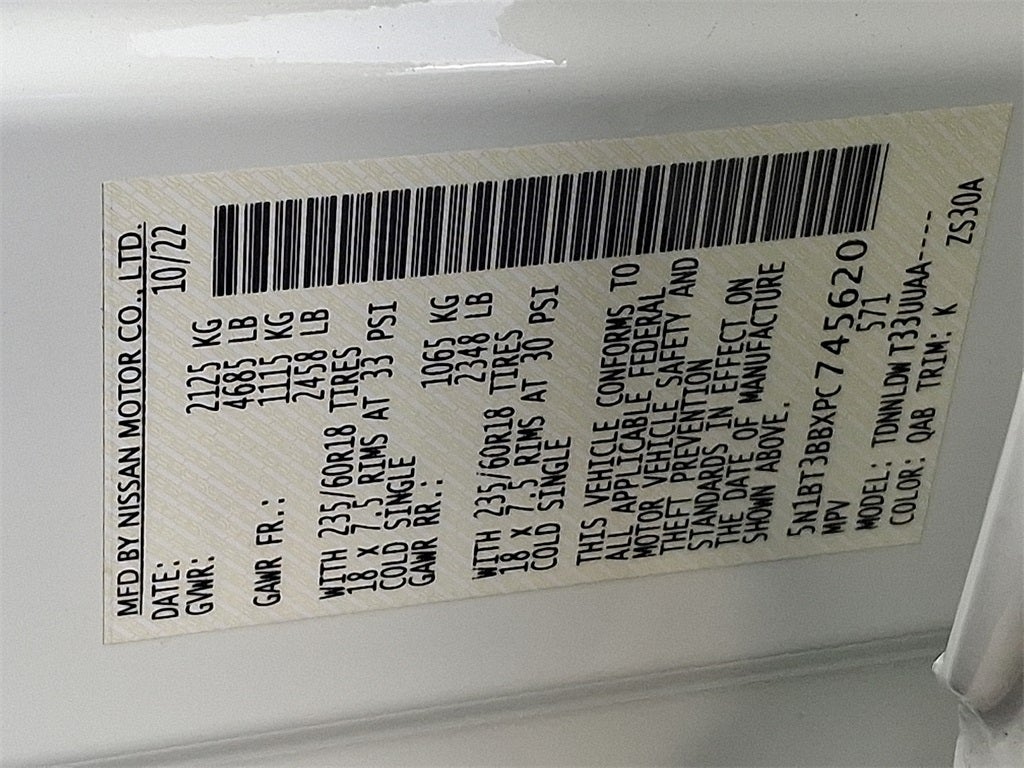 This Vehicle Includes the Following Options: AWD, 18 Aluminum Alloy Wheels, 4-Wheel Disc Brakes, 5.604 Axle Ratio, 6 Speakers, ABS brakes, Air Conditioning, Alloy wheels, AM/FM Radio, AM/FM radio: SiriusXM, Auto High-beam Headlights, Automatic temperature control, Black Splash Guards (Set of 4), Brake assist, Bumpers: body-color, Chrome Rear Bumper Protector, Cloth Seat Trim, Delay-off headlights, Driver door bin, Driver vanity mirror, Dual front impact airbags, Dual front side impact airbags, Electronic Stability Control, Emergency communication system: NissanConnect Services, First Aid Kit, Floor Mats w/1-Piece Cargo Area Protector, Four wheel independent suspension, Front anti-roll bar, Front Bucket Seats, Front Center Armrest, Front dual zone A/C, Front reading lights, Fully automatic headlights, Heated door mirrors, Illuminated entry, Knee airbag, Low tire pressure warning, NissanConnect featuring Apple CarPlay and Android Auto, Occupant sensing airbag, Outside temperature display, Overhead airbag, Overhead console, Panic alarm, Passenger door bin, Passenger vanity mirror, Power door mirrors, Power driver seat, Power steering, Power windows, Radio data system, Rear anti-roll bar, Rear Parking Sensors, Rear seat center armrest, Rear side impact airbag, Rear window defroster, Rear window wiper, Remote keyless entry, Speed control, Speed-Sensitive Wipers, Split folding rear seat, Spoiler, Steering wheel mounted audio controls, Tachometer, Telescoping steering wheel, Tilt steering wheel, Traction control, Trip computer, and Variably intermittent wipers.