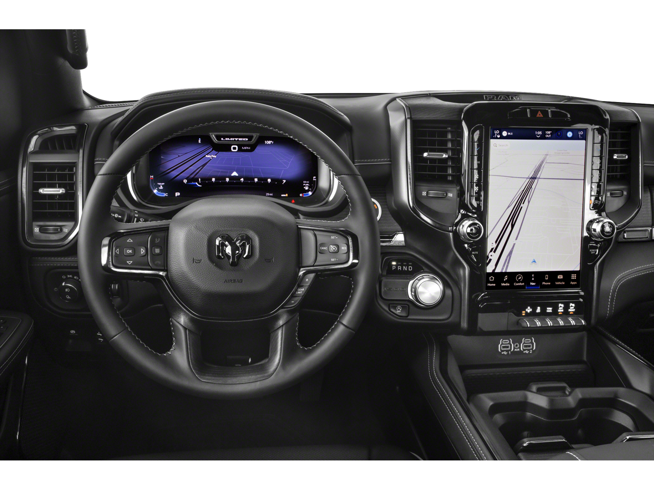 THIS VEHICLE INCLUDES THE FOLLOWING FEATURES AND OPTIONS: Body Color Bumper Group (Body Color Front Bumper and Body Color Rear Bumper w/Step Pads), Elite Package (DISC) (4 Way Front Headrests, Bucket Seats, Driver Seat Memory, Front Seat Back Map Pockets, Full Length Premium Floor Console, harman/kardon 19 Speaker Premium Sound, Heated Front Seats, Heated Second Row Seats, Heated Steering Wheel, Instrument Cluster Theme 8, MOPAR 4 Adjustable Cargo Tie-Down Hooks, MOPAR Bright Pedal Kit, MOPAR Deployable Bed Step Center Mount, Multi-Function Tailgate, Power 4-Way Driver Lumbar Adjust, Power 4-Way Passenger Lumbar Adjust, Power 8-Way Driver & Passenger Seats, Premium Quilted Leather Bucket Seats, Rear 60/40 Folding Split Recline Seat, Rotary Shifter-Jeweled, Suede Headliner, Tailgate Ajar Warning Lamp, Ventilated Front Seats, and Ventilated Rear Seats), Limited Level 1 Equipment Group (Adaptive Cruise Control w/Stop & Go, Digital Rearview Mirror, Heads-Up Display, Lane Keep Assist, LED CHMSL Lamp, MOPAR Spray In Bedliner, Parallel & Perp Park Assist w/Stop, ParkSense Front/Rear Park Assist w/Stop, Pedestrian Emergency Braking, Pick-Up Box Lighting, Power Running Boards, Surround View Camera System, and Wireless Charging Pad), Quick Order Package 27M Limited, Trailer Tow Group (Trailer Brake Control, Trailer Light Check, Trailer Reverse Steering Control, and Trailer Tire Pressure Monitoring System), 10 Speakers, 33 Gallon Fuel Tank, 4-Wheel Disc Brakes, 48V Belt Starter Generator, ABS brakes, Active Noise Control System, Adjustable pedals, Air Conditioning, Alloy wheels, AM/FM radio: SiriusXM with 360L, Apple CarPlay/Android Auto, Audio memory, Auto High-beam Headlights, Auto-dimming door mirrors, Auto-Dimming Exterior Driver Mirror, Auto-dimming Rear-View mirror, Auto-leveling suspension, Automatic temperature control, Bodyside moldings, Brake assist, Bumpers: chrome, Chrome Exterior Mirrors, Compass, Convex Wide-Angle Exterior Mirror Insert, Delay-off headlights, Dome Dual LED Reading Lamp, Driver door bin, Driver vanity mirror, Dual front impact airbags, Dual front side impact airbags, Dual Rear Exhaust w/Bright Tips, Dual-Pane Panoramic Sunroof, Electronic Stability Control, Exterior Mirrors Courtesy Lamps, Exterior Mirrors w/Heating Element, Exterior Mirrors w/Memory, Exterior Mirrors w/Supplemental Signals, Front anti-roll bar, Front Bucket Seats, Front Center Armrest w/Storage, Front dual zone A/C, Front fog lights, Front License Plate Bracket, Front reading lights, Front wheel independent suspension, Fully automatic headlights, Garage door transmitter, Genuine wood console insert, Genuine wood dashboard insert, Genuine wood door panel insert, Heated door mirrors, Heated front seats, Heated rear seats, Heated steering wheel, Heavy-Duty Engine Cooling, HEMI Badge, Illuminated entry, Leather steering wheel, LED Dome/Reading Lamp, Low tire pressure warning, Memory seat, Navigation System, Occupant sensing airbag, Outside temperature display, Overhead airbag, Overhead console, Panic alarm, ParkView Rear Back-Up Camera, Passenger door bin, Passenger vanity mirror, Passive Tuned Mass Damper, Pedal memory, Power door mirrors, Power driver seat, Power passenger seat, Power steering, Power windows, Power-Folding Mirrors, Premium Leather Trimmed Bucket Seats, Radio data system, Radio: Uconnect 5 Nav w/12.0 Display, Rain sensing wipers, Rear anti-roll bar, Rear seat center armrest, Rear step bumper, Rear window defroster, Remote keyless entry, Security system, Speed control, Split folding rear seat, Steering wheel mounted audio controls, Tachometer, Telescoping steering wheel, Tilt steering wheel, Traction control, Tri-Fold Tonneau Cover, Trip computer, Turn signal indicator mirrors, Variably intermittent wipers, Ventilated fro