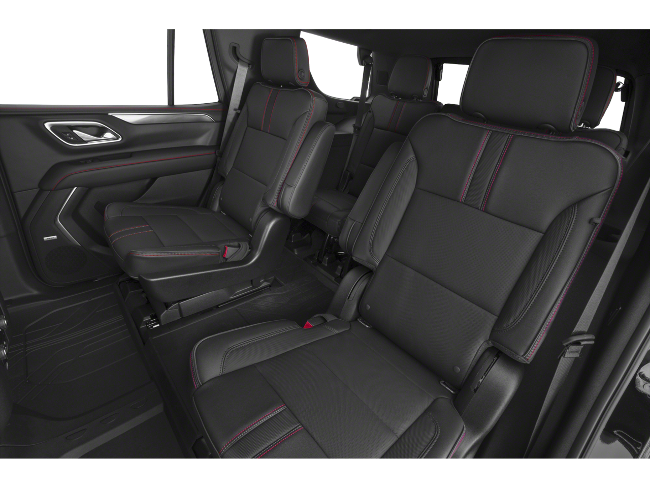 This Vehicle Includes the Following Options: Advanced Trailering Package (Hitch View w/Pan/Zoom Image Adjustment, Integrated Trailer Brake Controller, and Smart Trailer Integration Indicator), Driver Alert Package (Lane Change Alert w/Side Blind Zone Alert and Rear Cross Traffic Alert), Luxury Package (2nd Row Pwr Release 60/40 Split-Folding Bench Seat, 3rd Row 60/40 Power-Folding Split-Bench Seat, Adaptive Cruise Control, Enhanced Automatic Emergency Braking, HD Surround Vision, Heated 2nd Row Outboard Seats, Heated Steering Wheel, Memory Settings, Outside Heated Power-Adjustable Mirrors, Power Tilt & Telescopic Steering Column, and Rear Pedestrian Alert), Max Trailering Package (2-Speed Active Electronic AutoTrac Transfer Case and Extra Capacity Cooling System), Preferred Equipment Group 1SP (1st & 2nd Row Color-Keyed Carpeted Floor Mats, Auto-Dimming Inside Rear-View Mirror, Bose 9-Speaker Stereo Audio System Feature, Bright Front & Rear Door Sill Plates, Color-Keyed Carpeting Floor Covering, Driver & Front Outboard Passenger Airbags, Enhanced Driver Information Center, Floor Console w/Storage Area, Hands-Free Rear Power Programmable Liftgate, LED Daytime Running Lamps, Memory Settings for Driver, Remote Start, SiriusXM w/360L, Universal Home Remote, Wireless Charging, and Wrapped Steering Wheel), 4WD, Jet Black/Victory Red Leather, 10-Way Power Driver & Passenger Seat Adjusters, 3.23 Rear Axle Ratio, 3rd row seats: split-bench, 4-Wheel Disc Brakes, 9 Speakers, ABS brakes, Air Conditioning, Alloy wheels, AM/FM radio: SiriusXM with 360L, Apple CarPlay/Android Auto, Auto High-beam Headlights, Auto-dimming Rear-View mirror, Automatic temperature control, Brake assist, Bumpers: body-color, Compass, Delay-off headlights, Driver door bin, Driver vanity mirror, Dual front impact airbags, Dual front side impact airbags, Electronic Stability Control, Emergency communication system: OnStar and Chevrolet connected services capable, Four wheel independent suspension, Front anti-roll bar, Front Bucket Seats, Front Center Armrest, Front dual zone A/C, Front High-Back Reclining Bucket Seats, Front reading lights, Fully automatic headlights, Garage door transmitter, Heated door mirrors, Heated Driver & Front Passenger Seats, Heated front seats, Illuminated entry, Infotainment Display, Low tire pressure warning, Memory seat, Navigation System, Occupant sensing airbag, Outside temperature display, Overhead airbag, Overhead console, Panic alarm, Passenger door bin, Passenger vanity mirror, Perforated Leather Seat Trim, Power door mirrors, Power driver seat, Power Liftgate, Power passenger seat, Power Release 2nd Row Bucket Seats, Power steering, Power windows, Premium audio system: Chevrolet Infotainment 3 Premium, Premium Smooth Ride Suspension, Radio: Chevrolet Infotainment 3 Premium System, Rain sensing wipers, Rear air conditioning, Rear anti-roll bar, Rear reading lights, Rear seat center armrest, Rear window defroster, Rear window wiper, Remote keyless entry, Roof rack: xxxxxx, Security system, Set of 4 Wheel Locks (LPO), Speed control, Speed-sensing steering, Split folding rear seat, Spoiler, Steering wheel mounted audio controls, Tachometer, Telescoping steering wheel, Tilt steering wheel, Traction control, Trip computer, Variably intermittent wipers, Voltmeter, and Wheels: 22 x 9 Bright Machined.