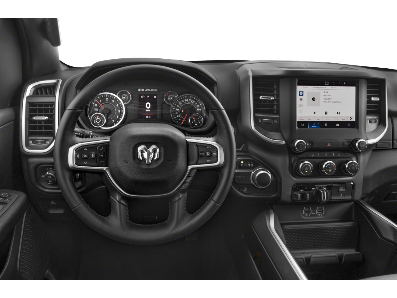 This Vehicle Includes the Following Options: Laramie Level 1 Equipment Group (2nd Row In Floor Storage Bins, 4G LTE Wi-Fi Hot Spot, Apple CarPlay, Auto High Beam Headlamp Control, Blind Spot & Cross Path Detection, Connected Travel & Traffic Services, Connectivity - US/Canada, Electric Shift-On-Demand Transfer Case, Foam Bottle Insert (Door Trim Panel), For Details, Visit DriveUconnect.com, For More Info, Call 800-643-2112, Front Door Accent Lighting, Front LED Fog Lamps, Global Telematics Box Module (TBM), Google Android Auto, GPS Navigation, HD Radio, Heated Second Row Seats, Integrated Voice Command w/Bluetooth®, LED Reflector Headlamps, Power Adjustable Pedals w/Memory, Radio: Uconnect 5 Nav w/12.0 Display, Rain Sensitive Windshield Wipers, Rear Door Accent Lighting, Rear Power Sliding Window, Rear Window Defroster, Remote Tailgate Release, SiriusXM Radio Service, SiriusXM w/360L, and USB Host Flip), Quick Order Package 27H Laramie, 10 Speakers, 3 Rear Seat Head Restraints, 4 Way Front Headrests, 4-Wheel Disc Brakes, 48V Belt Starter Generator, ABS brakes, Air Conditioning, Alloy wheels, AM/FM radio: SiriusXM with 360L, Anti-Spin Differential Rear Axle, Apple CarPlay/Android Auto, Audio memory, Auto-dimming door mirrors, Auto-Dimming Exterior Driver Mirror, Auto-dimming Rear-View mirror, Automatic temperature control, Brake assist, Bumpers: chrome, Chrome Exterior Mirrors, Class IV Receiver Hitch, Compass, Convex Wide-Angle Exterior Mirror Insert, Delay-off headlights, Driver door bin, Driver Seat Memory, Driver vanity mirror, Dual front impact airbags, Dual front side impact airbags, Electronic Stability Control, Exterior Mirrors Courtesy Lamps, Exterior Mirrors w/Heating Element, Exterior Mirrors w/Memory, Exterior Mirrors w/Supplemental Signals, Front anti-roll bar, Front Center Armrest w/Storage, Front dual zone A/C, Front fog lights, Front License Plate Bracket, Front reading lights, Front Seat Back Map Pockets, Front wheel independent suspension, Fully automatic headlights, Garage door transmitter, Heated door mirrors, Heated Front Seats, Heated front seats, Heated Steering Wheel, Heated steering wheel, Illuminated entry, Leather steering wheel, Leather Trim 40/20/40 Bench Seat, Low tire pressure warning, Memory seat, MOPAR Front & Rear Rubber Floor Mats, Navigation System, Occupant sensing airbag, Outside temperature display, Overhead airbag, Overhead console, Panic alarm, ParkSense Front/Rear Park Assist w/Stop (DISC), ParkView Rear Back-Up Camera, Passenger door bin, Passenger vanity mirror, Power 2-Way Driver Lumbar Adjust, Power 2-Way Passenger Lumbar Adjust, Power 8-Way Driver & Passenger Seats, Power door mirrors, Power driver seat, Power passenger seat, Power steering, Power windows, Power-Folding Mirrors, Radio data system, Radio: Uconnect 5 Nav w/8.4 Display, RAM Grille Badge - Chrome, Rear 60/40 Folding Seat, Rear anti-roll bar, Rear seat center armrest, Rear step bumper, Remote keyless entry, Security system, Speed control, Split folding rear seat, Steering wheel mounted audio controls, Tachometer, Telescoping steering wheel, Tilt steering wheel, Traction control, Trailer Brake Control, Trip computer, Turn signal indicator mirrors, Variably intermittent wipers, Ventilated Front Seats, Ventilated front seats, Voltmeter, Wheels: 18 x 8 Aluminum Base Painted, and Wheels: 20 x 9 Premium Paint/PolisheD.