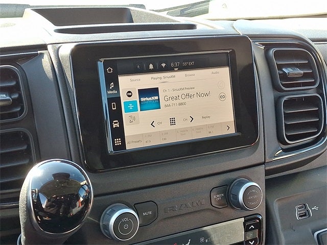 This Vehicle Includes the Following Options: Convenience Group (Adaptive Cruise Control w/Stop & Go, Exterior Mirrors w/Heating Element, Exterior Mirrors w/Supplemental Signals, Front Fog Lamps, Power Adjust Mirrors, Power Folding/Heated Mirrors, Power-Adjustable Convex Aux Mirrors, Power-Folding Mirrors, and Rear Cargo LED Lamp), MOPAR Side Wall Paneling U & L (Side Wall Paneling Lower), Power Group (100 Amp Battery, 115V Auxiliary Power Outlet, and 12V Rear Auxiliary Power Outlet), Quick Order Package 22B Tradesman w/Pass Seat (4-Way Manual Adjust Front Passenger Seat and Passenger Bucket Seat), Safety Group (Blind Spot & Cross Path Detection, Digital Rearview Mirror w/Autodim, Intelligent Speed Assist (ISA), Lane Departure Warning Plus, and ParkSense Front/Rear Park Assist System), Upfitter's Prep Package (Auxiliary Switches and Upfitter Electronic Module (VSIM)), 4 Speakers, 4-Wheel Disc Brakes, 4.08 Axle Ratio, 77 mph Maximum Speed, ABS brakes, Air Conditioning, AM/FM radio: SiriusXM, Apple CarPlay/Android Auto, Black/Gray Seats, Bodyside moldings, Brake assist, Cloth Bucket Seats, Driver door bin, Driver Seat Armrest, Driver's Seat Mounted Armrest, Electronic Stability Control, Front anti-roll bar, Front Bucket Seats, Front License Plate Bracket, Front reading lights, Front wheel independent suspension, Heavy Duty Suspension, Illuminated entry, Low tire pressure warning, MOPAR Cargo Compartment Floor Mat, MOPAR Rear Assist Handles, Outside temperature display, Overhead airbag, Overhead console, ParkView Rear Back-Up Camera, Passenger door bin, Power steering, Power windows, Radio: Uconnect 5 w/7 Display, Remote keyless entry, Steering wheel mounted audio controls, Tachometer, Telescoping steering wheel, Traction control, Trip computer, Turn signal indicator mirrors, Variably intermittent wipers, Wheel Center Cap, and Wheels: 16 x 6.0 Steel.