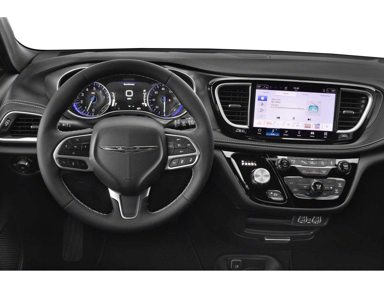THIS VEHICLE INCLUDES THE FOLLOWING FEATURES AND OPTIONS: Quick Order Package 27L, Safety Sphere (360 Surround View Camera System, Parallel and Perpendicular Park Assist with Stop, and ParkSense Front/Rear Park Assist with Stop), 10.1 Touchscreen Display, 17 x 7.0 Aluminum Wheels, 3.25 Axle Ratio, 3rd row seats: split-bench, 4-Wheel Disc Brakes, 4G LTE Wi-Fi Hot Spot, 6 Speakers, ABS brakes, Air Conditioning, Alloy wheels, AM/FM radio: SiriusXM, Apple CarPlay, Apple CarPlay/Android Auto, Auto-dimming Rear-View mirror, Automatic temperature control, Black Seats, Brake assist, Bumpers: body-color, Caprice Leatherette Bucket Seats, Compass, Delay-off headlights, Disassociated Touchscreen Display, Driver door bin, Driver vanity mirror, Driver's Seat Mounted Armrest, Dual front impact airbags, Dual front side impact airbags, Electronic Stability Control, Emergency communication system: Chrysler Connect, For Details, Visit DriveUconnect.com, Four wheel independent suspension, Front anti-roll bar, Front Bucket Seats, Front dual zone A/C, Front Fascia Air Deflectors, Front fog lights, Front reading lights, Fully automatic headlights, Garage door transmitter, Google Android Auto, GPS Antenna Input, Heated door mirrors, Heated front seats, Heated steering wheel, Illuminated entry, Integrated Active Noise Cancellation, Integrated Center Stack Radio, Knee airbag, Low tire pressure warning, Memory seat, Occupant sensing airbag, Outside temperature display, Overhead airbag, Overhead console, Panic alarm, ParkView Rear Back-Up Camera, Passenger door bin, Passenger seat mounted armrest, Passenger vanity mirror, Power door mirrors, Power driver seat, Power Liftgate, Power steering, Power windows, Radio data system, Radio: Uconnect 5 with 10.1 Display, Rain sensing wipers, Rear air conditioning, Rear reading lights, Rear window defroster, Rear window wiper, Reclining 3rd row seat, Remote keyless entry, Security system, SiriusXM Guardian - Included Trial (B), Speed control, Split folding rear seat, Spoiler, Steering wheel mounted audio controls, Tachometer, Telescoping steering wheel, Tilt steering wheel, Touring Suspension, Traction control, Trip computer, Turn signal indicator mirrors, USB Host Flip, Variably intermittent wipers, and Voltmeter.