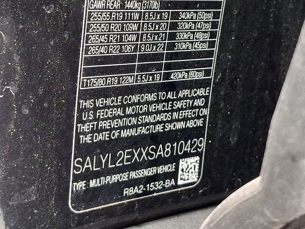 THIS VEHICLE INCLUDES THE FOLLOWING FEATURES AND OPTIONS: 12 Speakers, 14-Way Heated Front Seats w/Driver Memory, 4-Wheel Disc Brakes, ABS brakes, Air Conditioning, Alloy wheels, AM/FM radio: SiriusXM, Apple CarPlay & Android Auto, Auto High-beam Headlights, Auto tilt-away steering wheel, Auto-dimming door mirrors, Auto-dimming Rear-View mirror, Automatic temperature control, Brake assist, Bumpers: body-color, Compass, Delay-off headlights, Driver door bin, Driver vanity mirror, Dual front impact airbags, Dual front side impact airbags, Electronic Stability Control, Emergency communication system, Exterior Parking Camera Rear, Four wheel independent suspension, Front anti-roll bar, Front Bucket Seats, Front Center Armrest, Front dual zone A/C, Front fog lights, Front reading lights, Fully automatic headlights, Garage door transmitter: HomeLink, Grained Leather Seat Trim, Heated door mirrors, Heated front seats, Heated steering wheel, Illuminated entry, Leather steering wheel, Low tire pressure warning, Memory seat, Navigation system: Pivi Pro, Occupant sensing airbag, Outside temperature display, Overhead airbag, Overhead console, Panic alarm, Passenger door bin, Passenger vanity mirror, Power door mirrors, Power driver seat, Power Liftgate, Power moonroof, Power passenger seat, Power steering, Power windows, Radio data system, Radio: Meridian Sound System, Rain sensing wipers, Rear anti-roll bar, Rear fog lights, Rear reading lights, Rear seat center armrest, Rear window defroster, Rear window wiper, Remote keyless entry, Security system, Sirius XM Satellite Radio & HD Radio, Speed control, Speed-sensing steering, Speed-Sensitive Wipers, Split folding rear seat, Spoiler, Steering wheel memory, Steering wheel mounted audio controls, Tachometer, Telescoping steering wheel, Tilt steering wheel, Traction control, Trip computer, Turn signal indicator mirrors, Variably intermittent wipers, and Wheels: 19 Satin Dark Grey. 22/26 City/Highway MPG