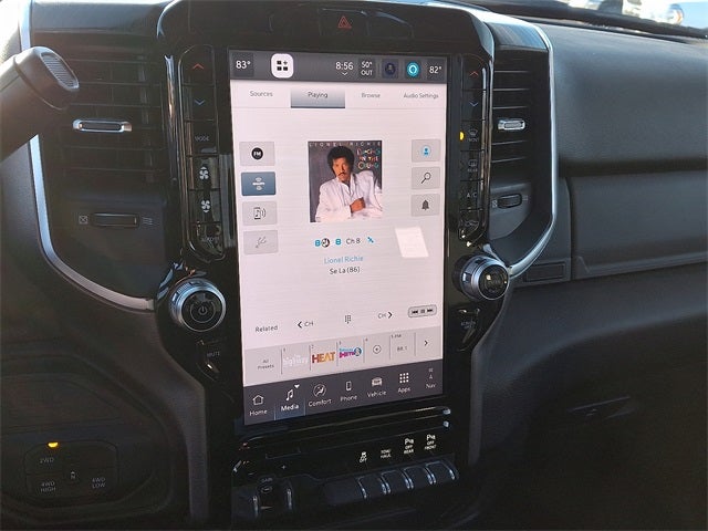 THIS VEHICLE INCLUDES THE FOLLOWING FEATURES AND OPTIONS: Big Horn Level 1 Plus Equipment Group (12 Touchscreen Display, 2 Way Rear Headrest Seat, 2nd Row In Floor Storage Bins, 4 Way Front Headrests, 40/20/40 Split Bench Seat, 4G LTE Wi-Fi Hot Spot, 9 Alpine Speakers w/Subwoofer, Air Conditioning ATC w/Dual Zone Control, Alexa Built-In, Anti-Spin Differential Rear Axle, Apple CarPlay, Auto Power-Folding Mirrors, Auto-Dimming Rear-View Mirror, Black Exterior Mirrors, Connected Travel & Traffic Services, Connectivity - US/Canada, Dual Glove Boxes, Emergency Vehicle Alert System (EVAS), Exterior Mirrors Courtesy Lamps, Exterior Mirrors w/Heating Element, Exterior Mirrors w/Supplemental Signals, Foam Bottle Insert (Door Trim Panel), Folding Flat Load Floor Storage, Footwell Courtesy Lamp, Forward & Reverse Utility Lights, Front Armrest w/Cupholders, Front Center Seat Cushion Storage, Front Seat Back Map Pockets, Global Telematics Box Module (TBM), Glove Box Lamp, Google Android Auto, GPS Antenna Input, GPS Navigation, HD Radio, Integrated Voice Command w/Bluetooth®, LED Bed Lighting, Locking Lower Glove Box, Luxury Steering Wheel, Manual Adjust 4-Way Front Passenger Seat, Mirror Running Lights, MOPAR Deployable Bed Step, MOPAR Spray In Bedliner, Off-Road Info Pages, Power 2-Way Driver Lumbar Adjust, Power Adjust 8-Way Driver Seat, Power Adjust Mirrors, Power Adjustable Convex Aux Mirrors, Power Heated Folding Telescopic Mirrors, Power Telescoping Mirrors, Premium Cloth 40/20/40 Bench Seat, Radio: Uconnect 5 Nav w/12.0 Display, Rear 60/40 Folding Seat, Rear Dome w/On/Off Switch Lamp, Remote Start System, Remote USB Port - Charge Only, Selectable Tire Fill Alert, SiriusXM Radio Service, SiriusXM w/360L, Steering Wheel Mounted Audio Controls, Storage Tray, and Trailer Tow Pages), Night Edition (Black Exterior Truck Badging, Black Interior Accents, Black Wheel Center Hub, Body Color Grille Surround, Gloss Black Nostrils/Mic Black Grille, Painted Front Bumper, Painted Rear Bumper, and Wheels: 20 x 8.0 Black Painted Aluminum), Quick Order Package 2UZ Big Horn, 3.73 Axle Ratio, 4-Wheel Disc Brakes, 6 Speakers, ABS brakes, Air Conditioning, Alloy wheels, AM/FM radio: SiriusXM, Apple CarPlay/Android Auto, Brake assist, Bumpers: chrome, Cloth 40/20/40 Bench Seat, Compass, Delay-off headlights, Driver door bin, Dual front impact airbags, Dual front side impact airbags, Electronic Stability Control, Front anti-roll bar, Front Center Armrest w/Storage, Front fog lights, Front License Plate Bracket, Front reading lights, Fully automatic headlights, Heated door mirrors, Illuminated entry, Low tire pressure warning, Manual Adjust 4-Way Driver Seat, Manufacturer's Statement of Origin, Occupant sensing airbag, Outside temperature display, Overhead airbag, Overhead console, Painted Flat Wheel-to-Wheel Side Steps, Panic alarm, ParkView Rear Back-Up Camera, Passenger door bin, Passenger vanity mirror, Power door mirrors, Power steering, Power windows, Radio data system, Radio: Uconnect 5 w/8.4 Display, Rear anti-roll bar, Rear Folding Seat, Rear seat center armrest, Rear step bumper, Rear window defroster, Remote keyless entry, Security system, Speed control, Tachometer, Tilt steering wheel, Traction control, Trip computer, Turn signal indicator mirrors, Variably intermittent wipers, Vinyl 2nd Row Seat, Voltmeter, and Wheels: 18 x 8.0 Polished Aluminum.